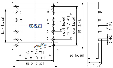 典型性能: 50-150W輸出功率; 2:1或4:1寬輸入電壓范圍; 產品尺寸2.32X2.44 inches(58.9X62X14mm); 鋁基板工藝; 國際標準管腳尺寸; 遙感補償; 基板過溫保護115°C
